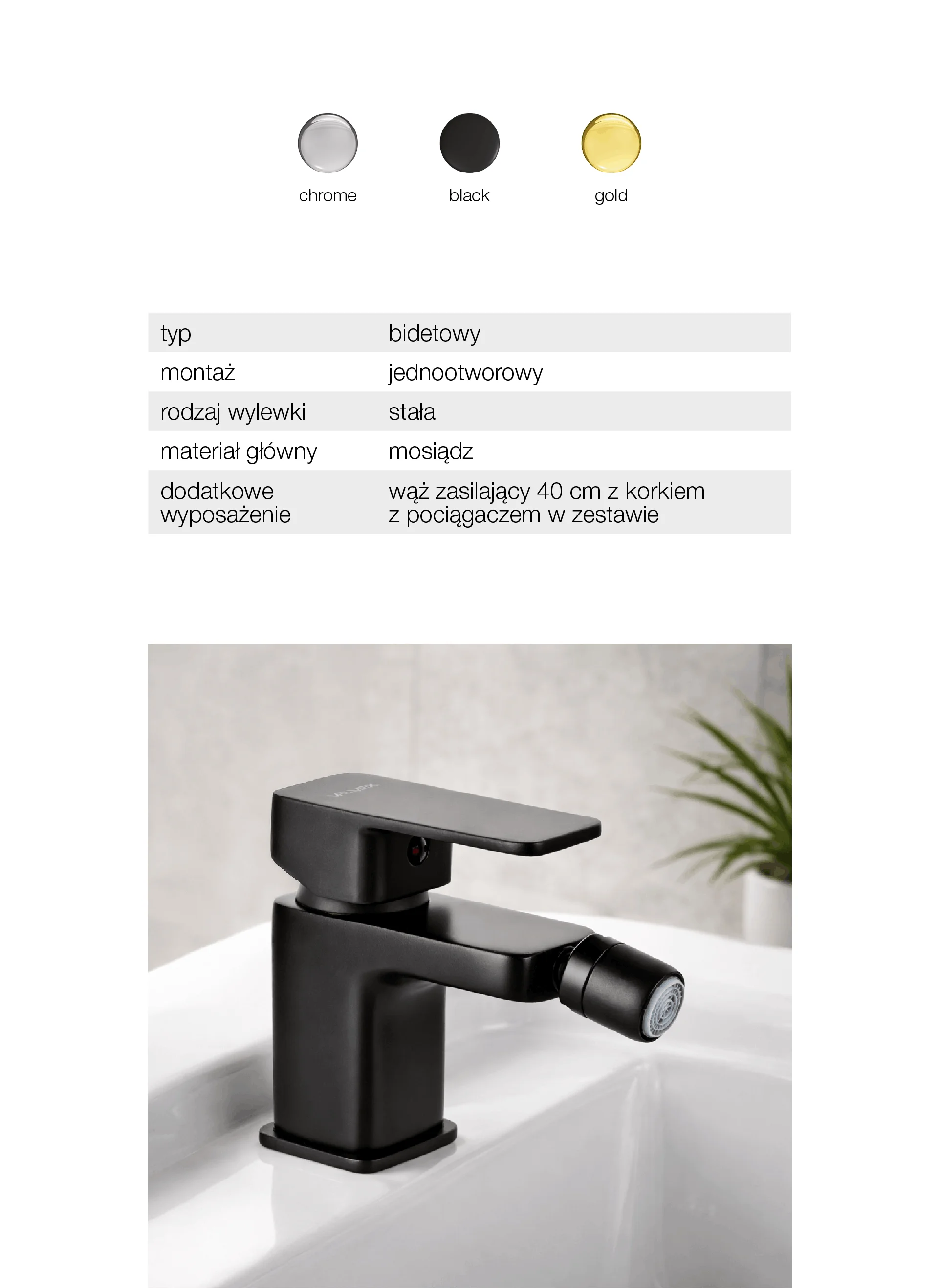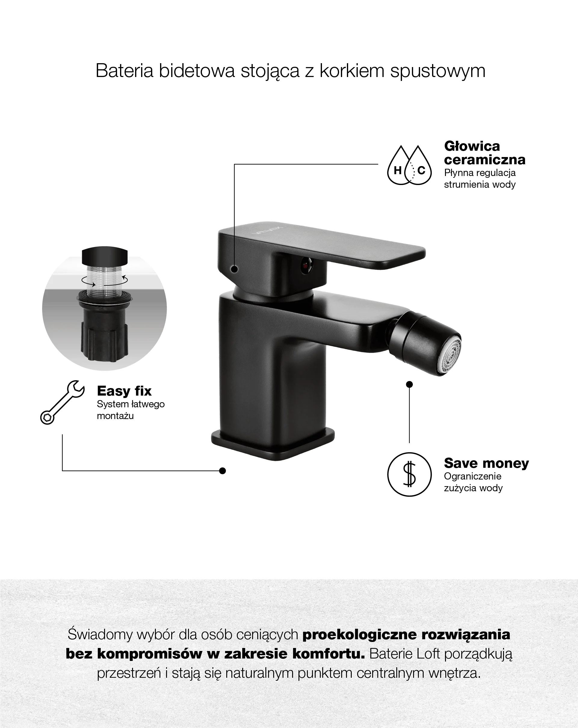 LOFT Black Bateria bidetowa stojąca z korkiem spustowym