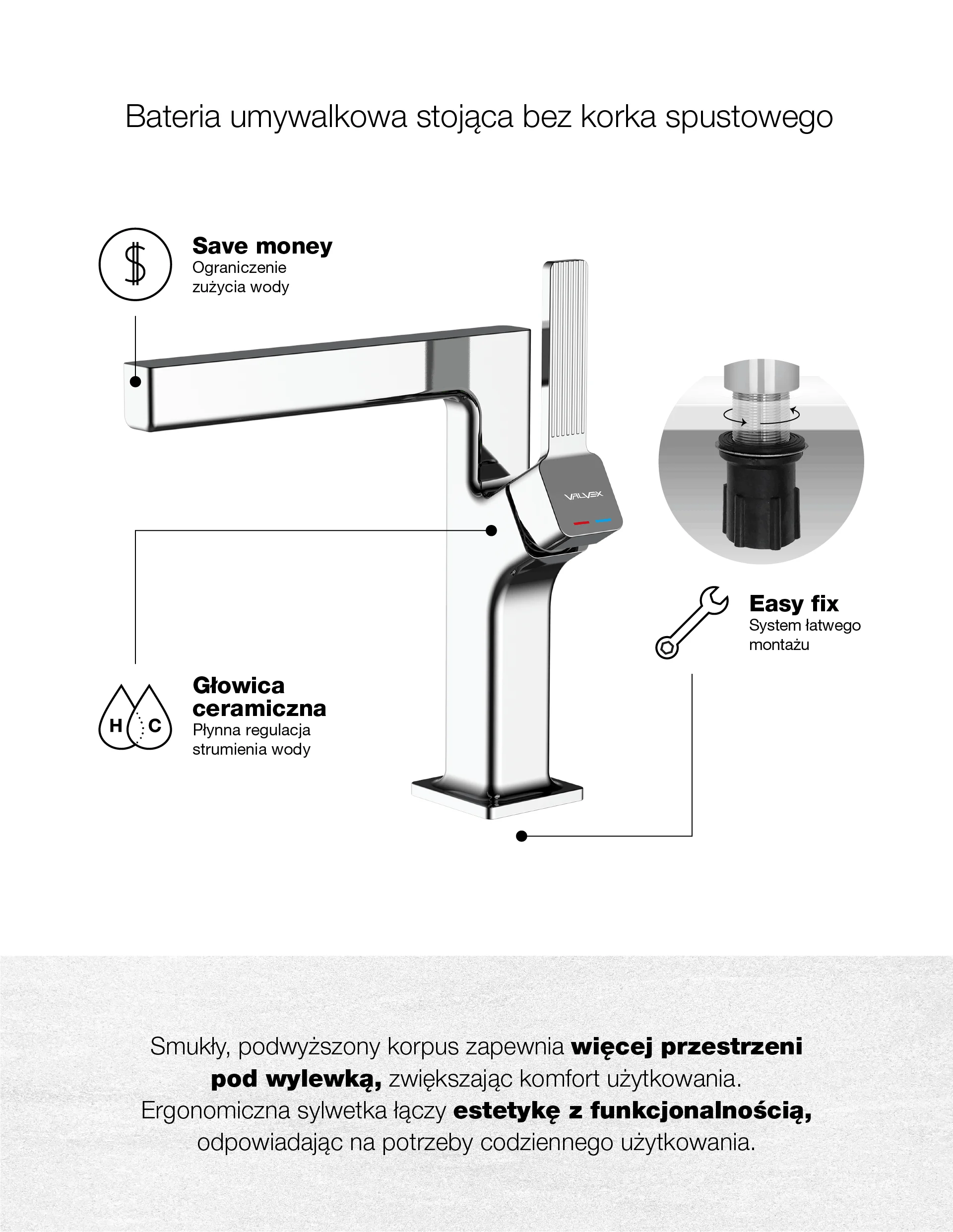 ALIBI Chrome Bateria umywalkowa stojąca bez korka spustowego