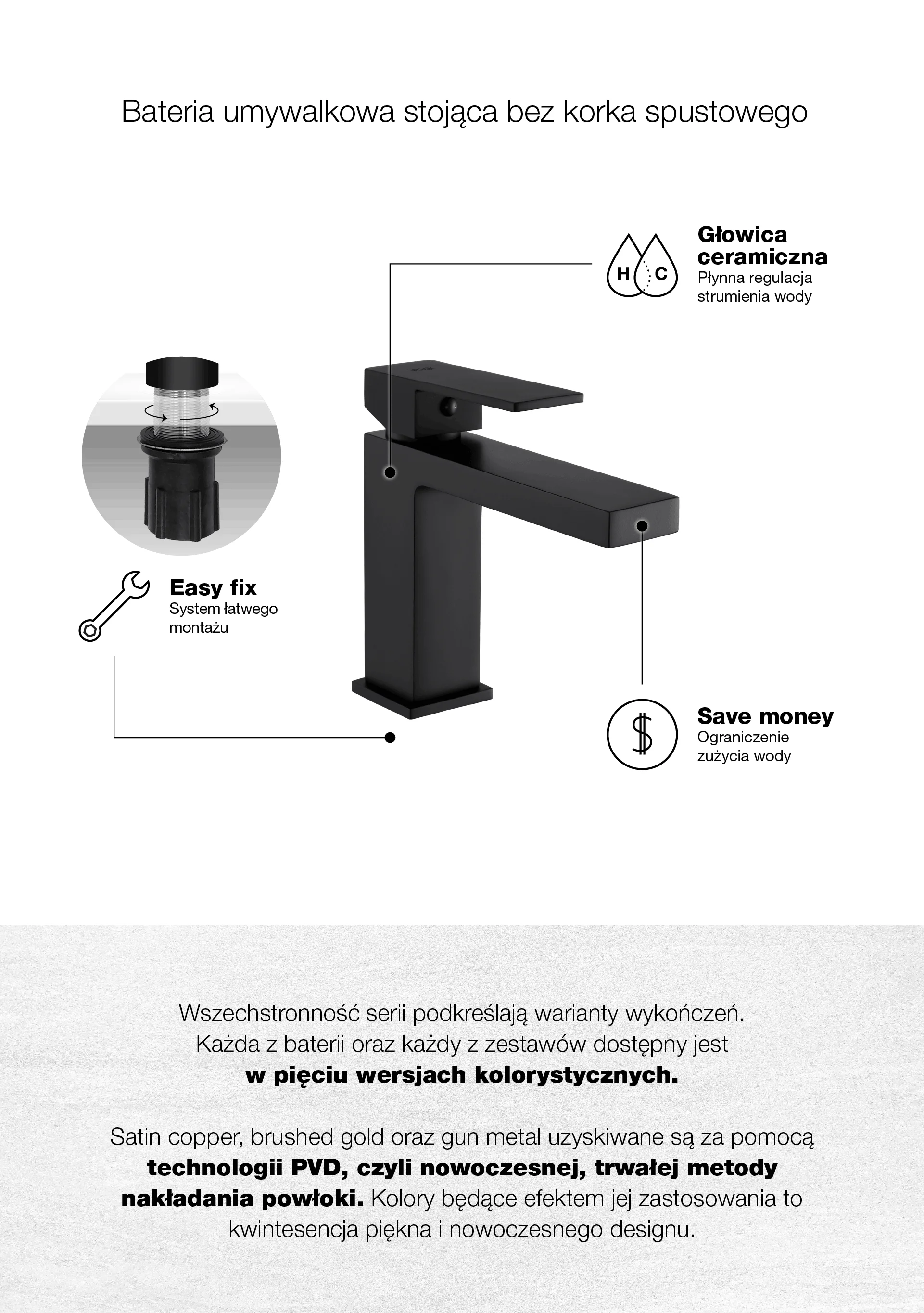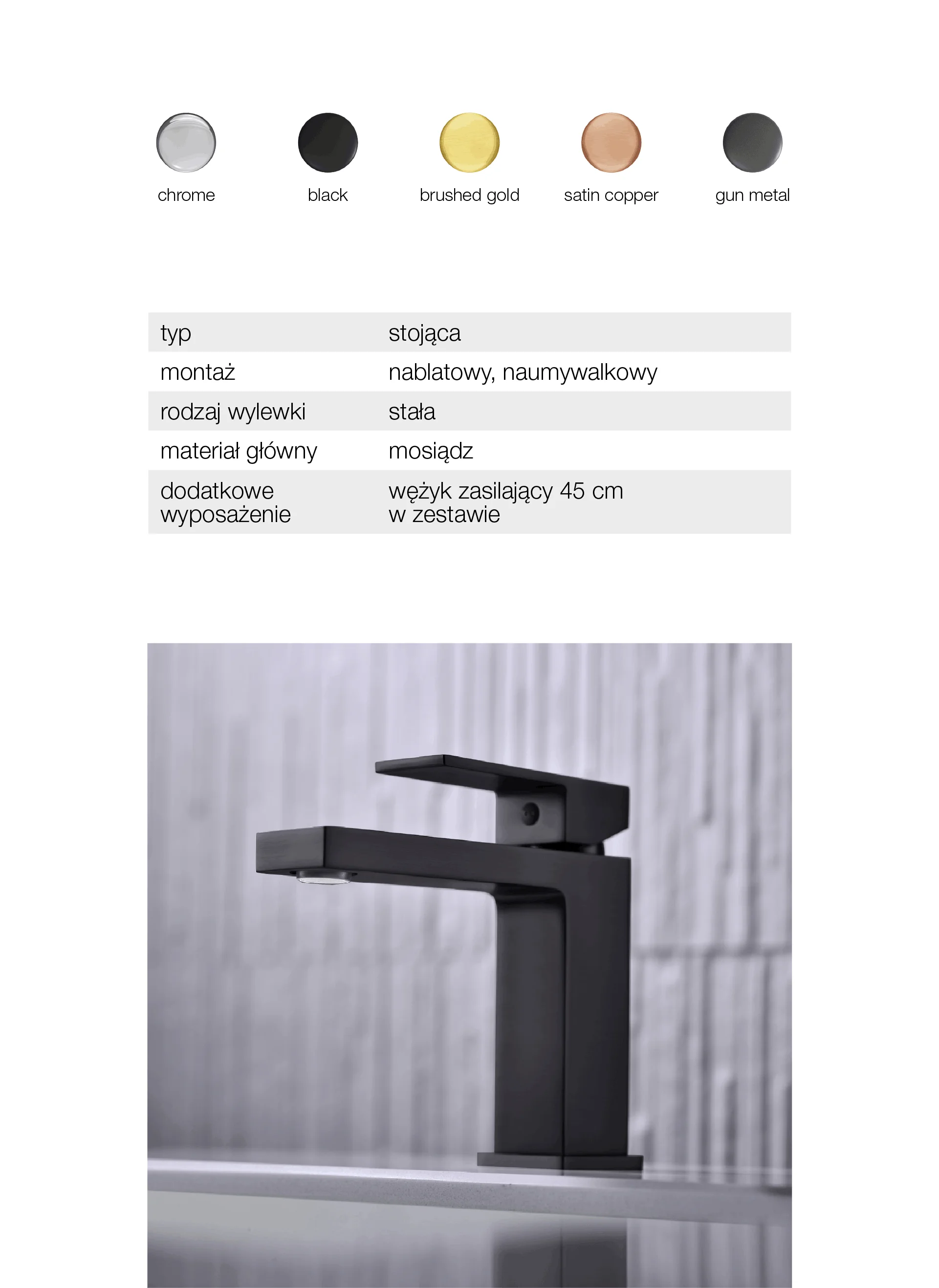 ARS Black Bateria umywalkowa stojąca bez korka spustowego