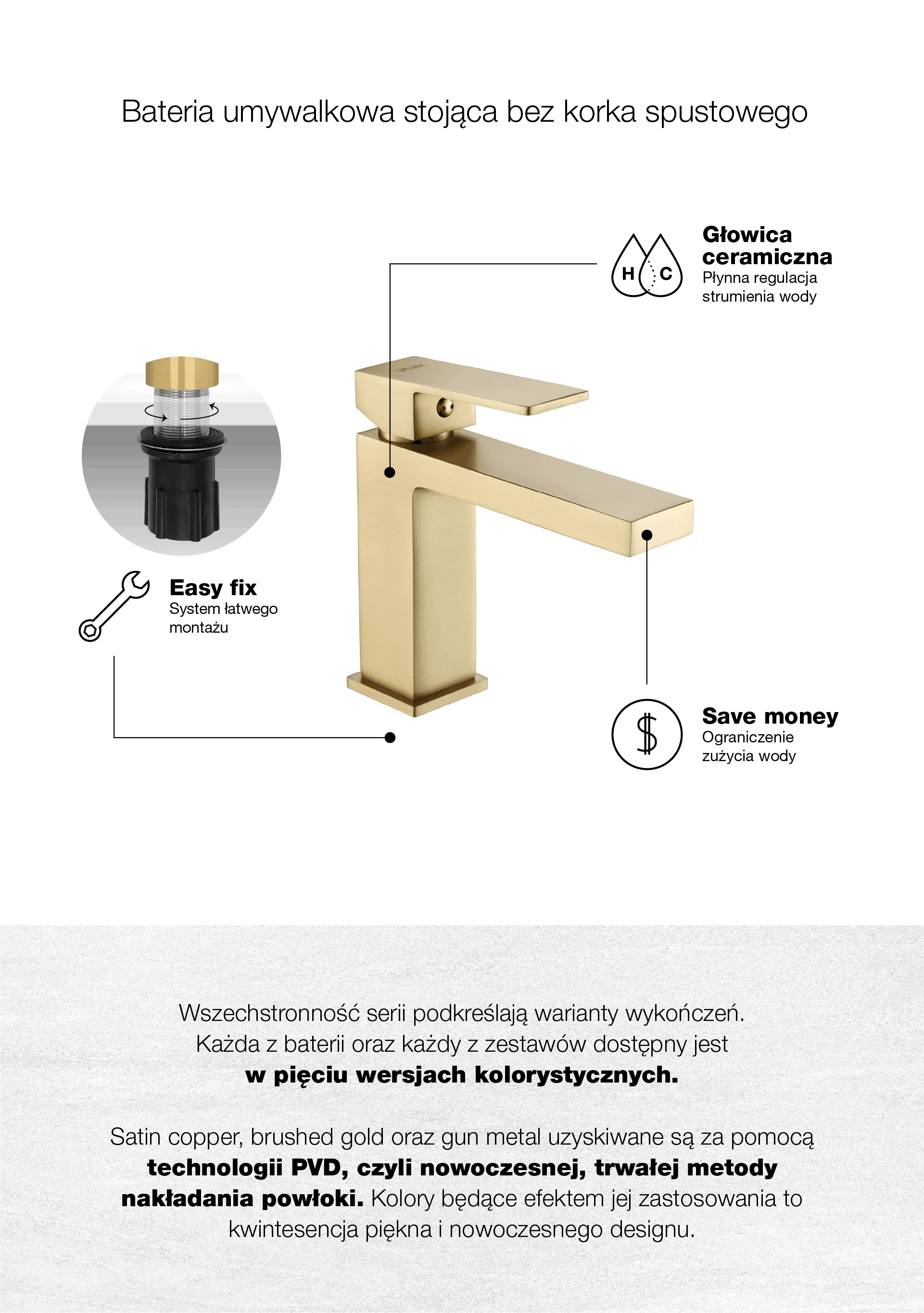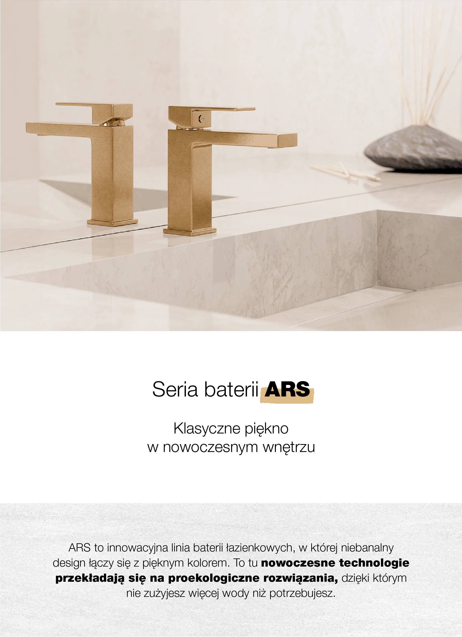ARS Brushed Gold Bateria umywalkowa stojąca bez korka spustowego
