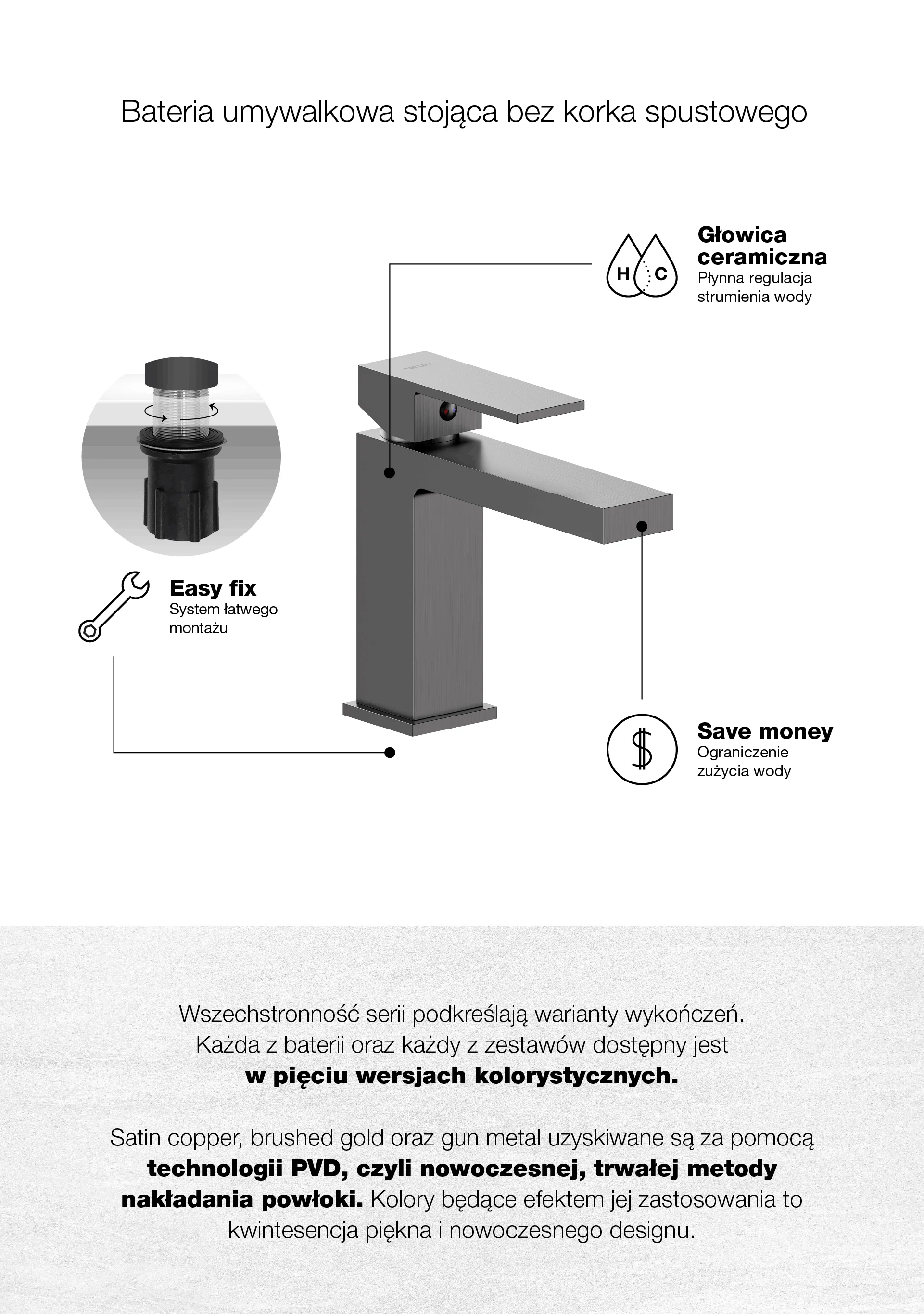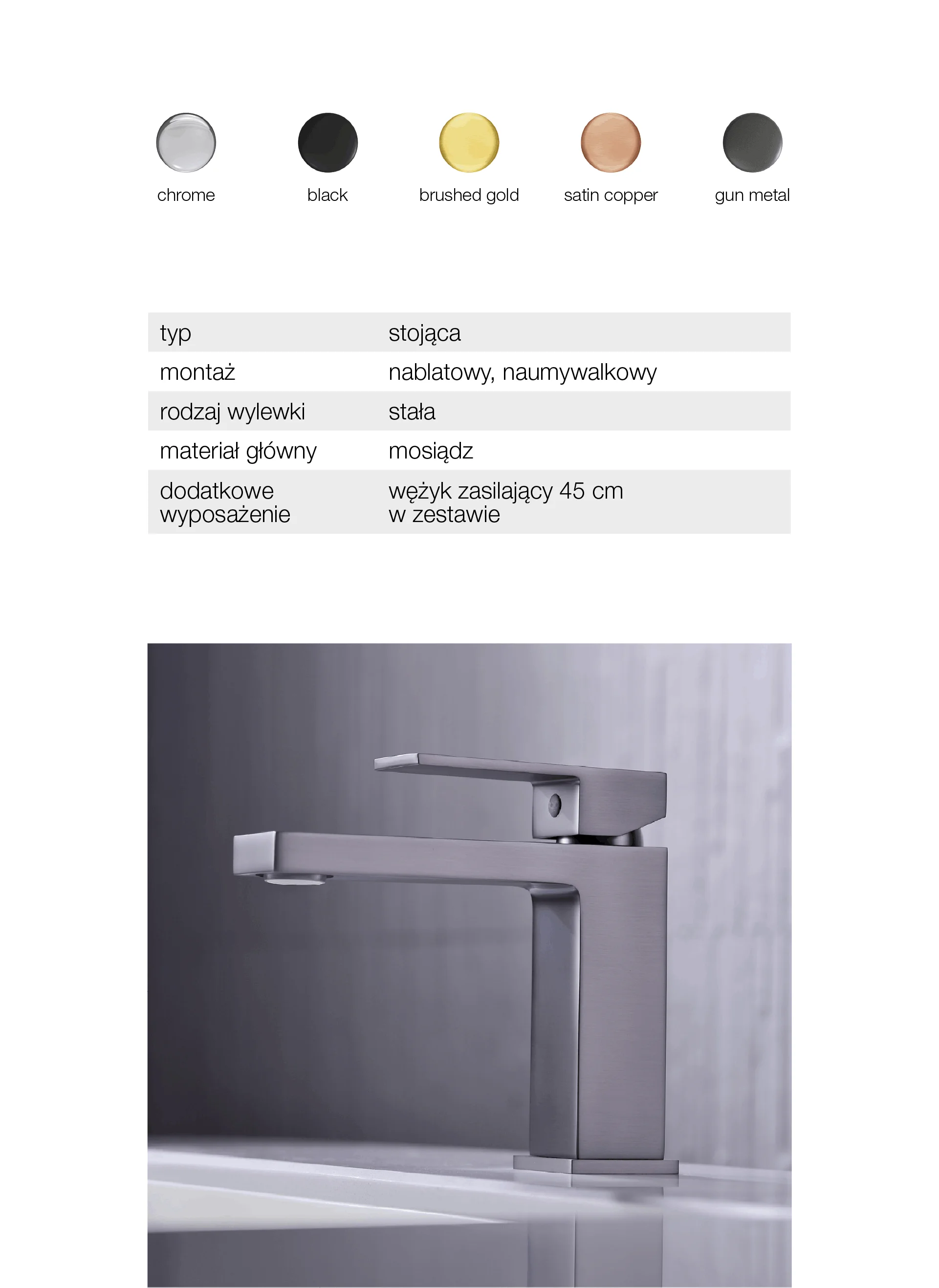 ARS Gun Metal Bateria umywalkowa stojąca bez korka spustowego