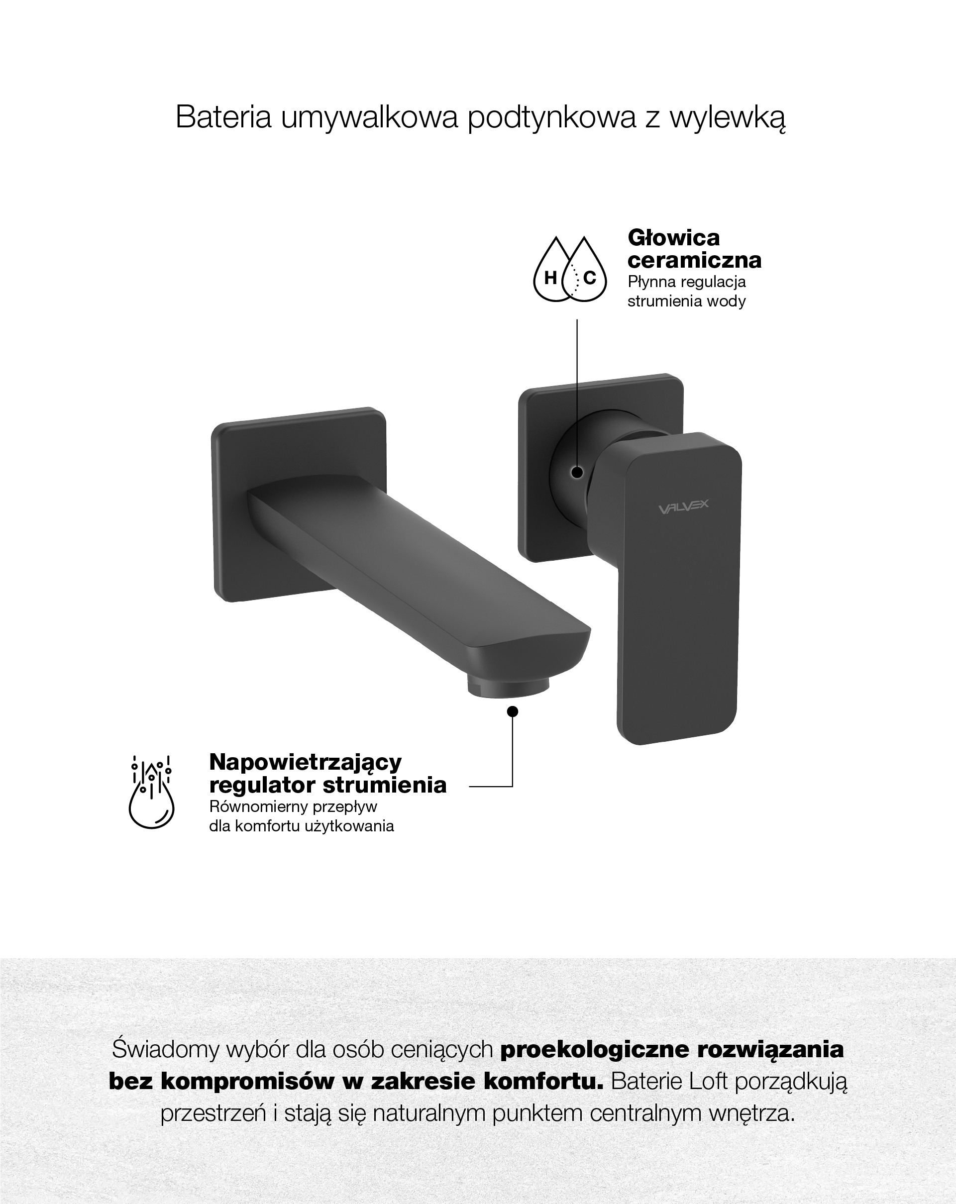 LOFT Black Bateria umywalkowa podtynkowa z wylewką