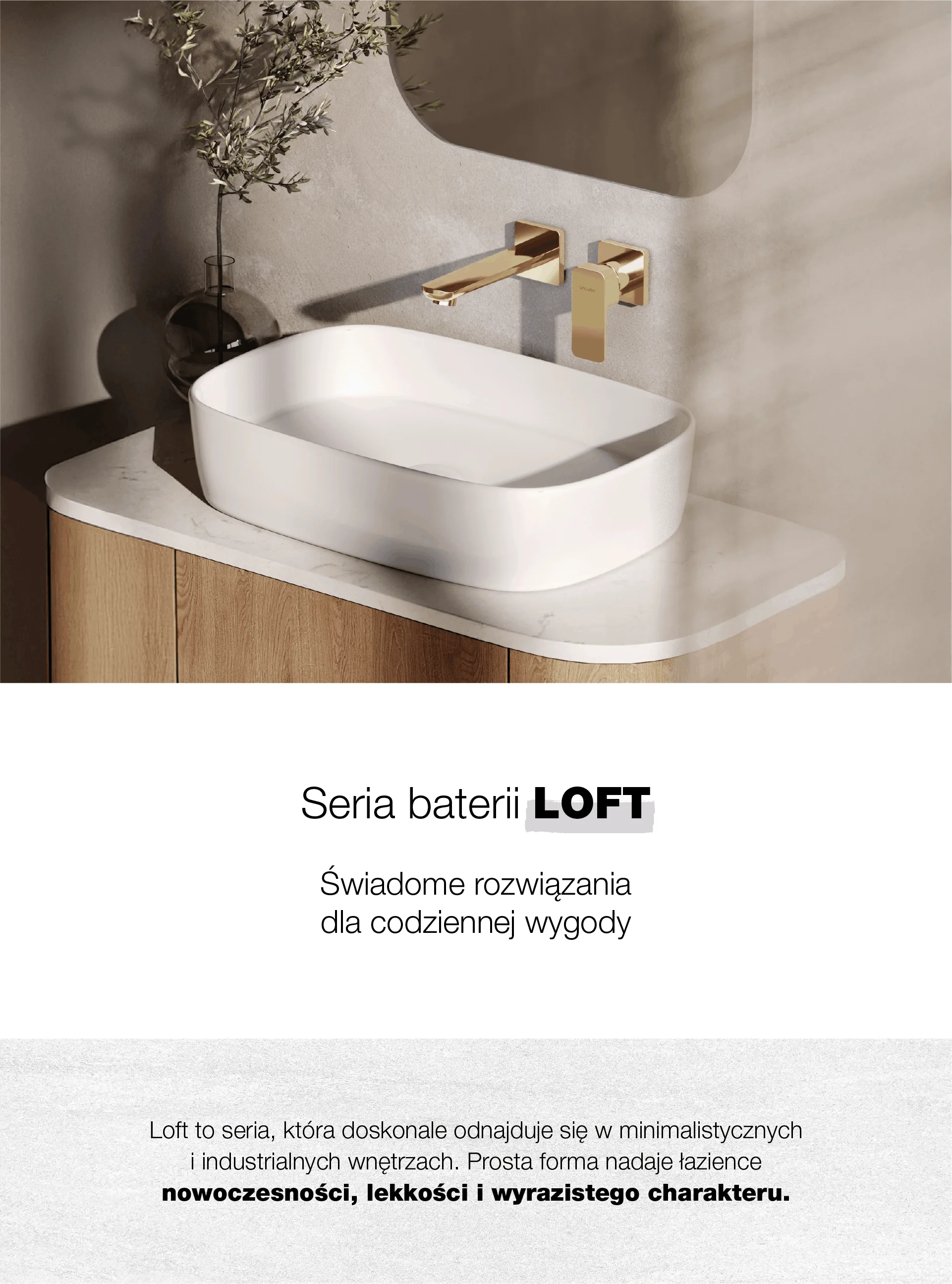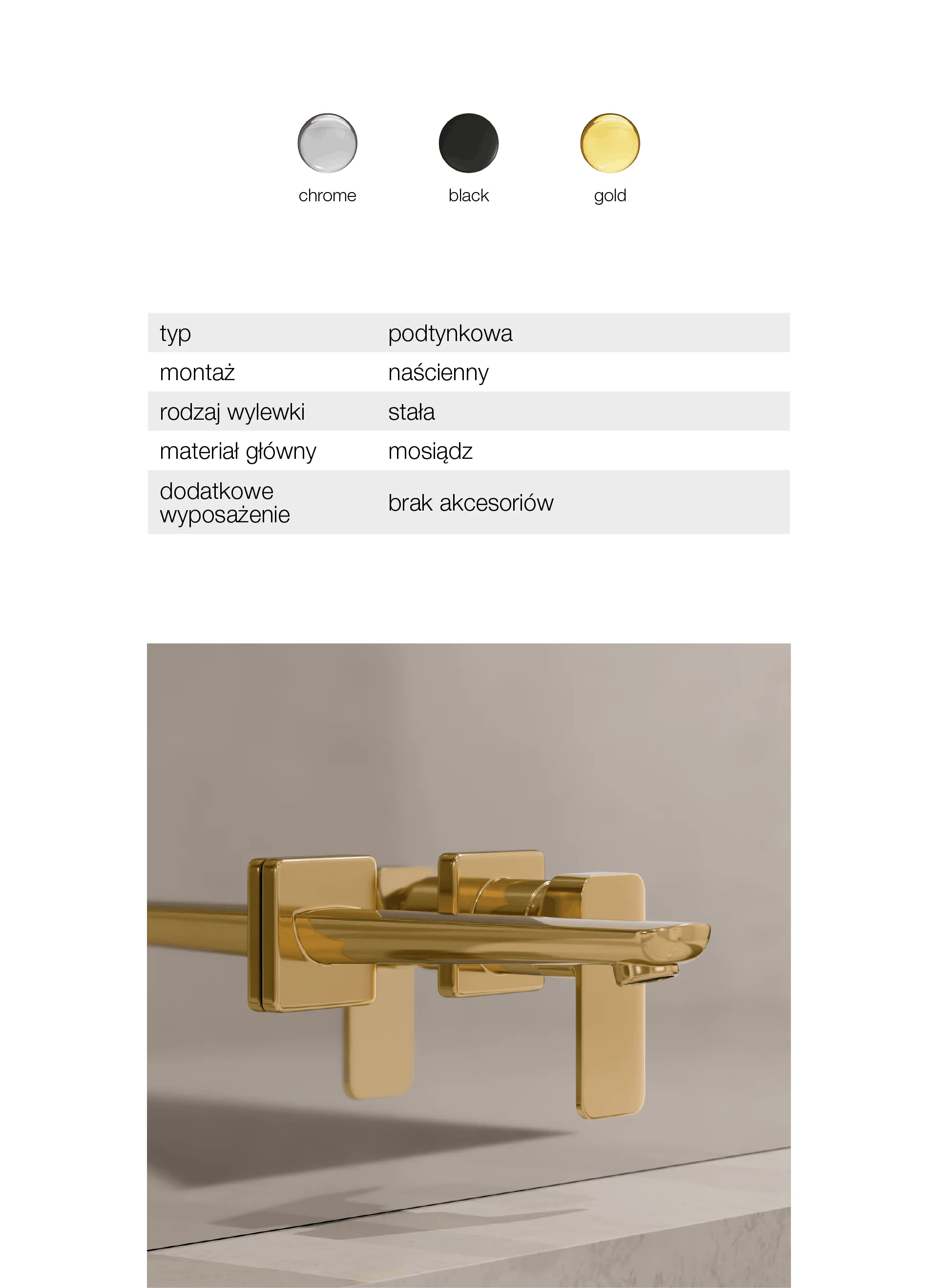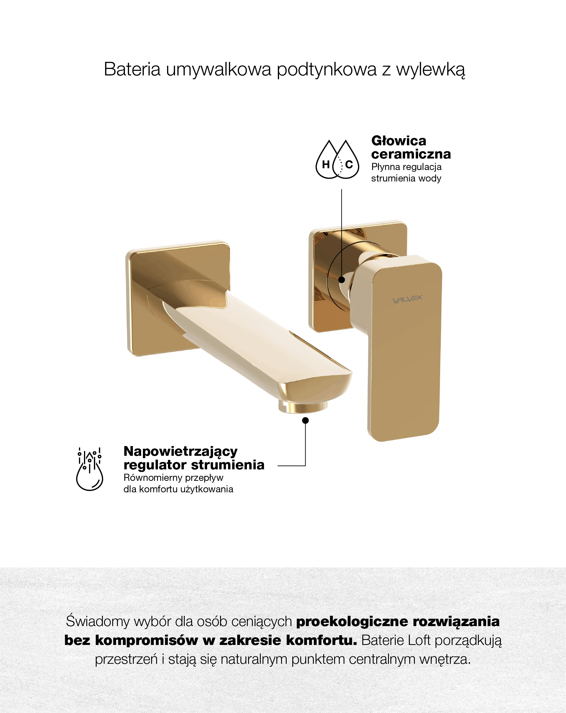 LOFT Gold Bateria umywalkowa naścienna podtynkowa z wylewką