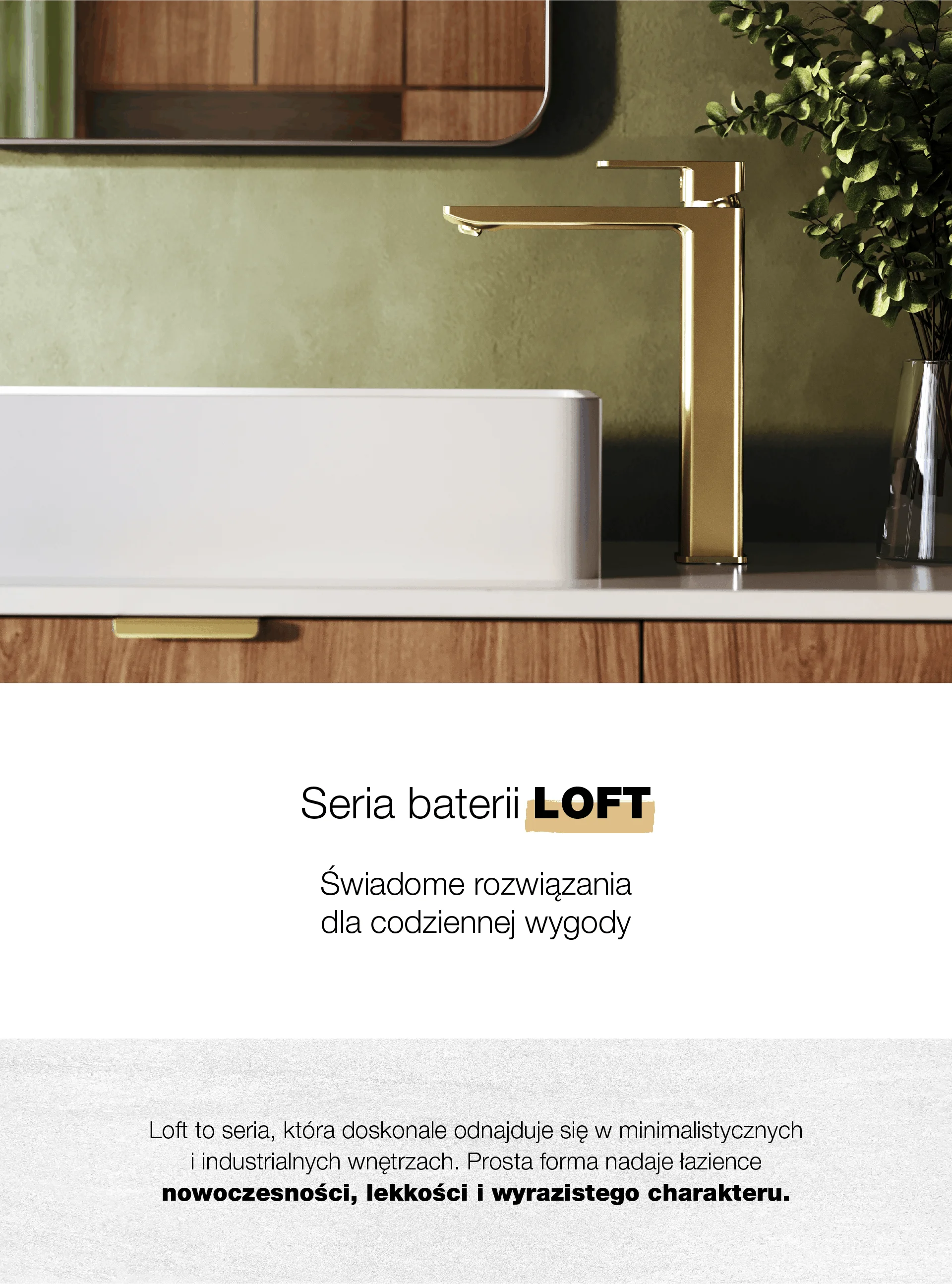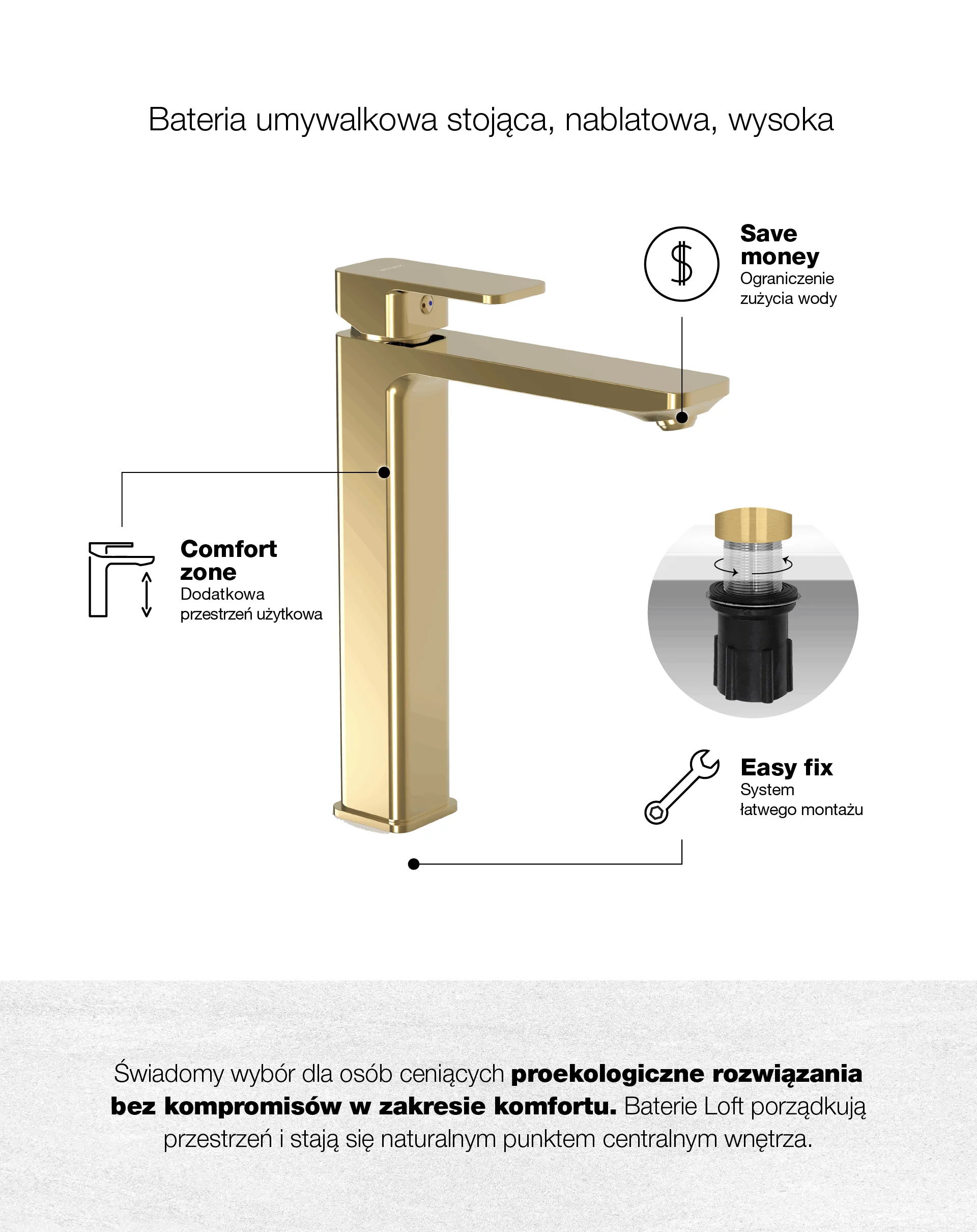 LOFT Gold Bateria umywalkowa stojąca, nablatowa, wysoka