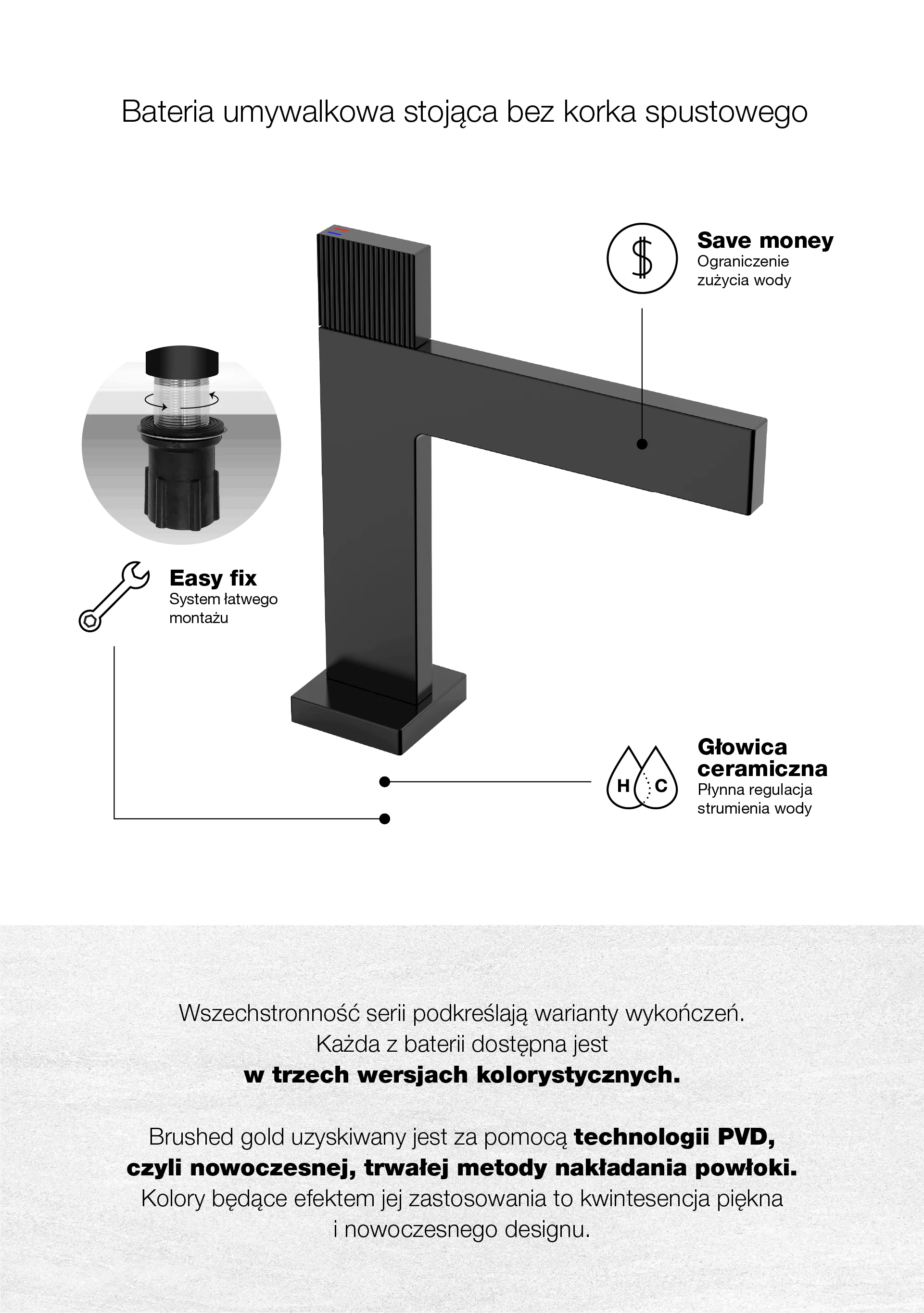 VARSO Black Bateria umywalkowa stojąca bez korka spustowego