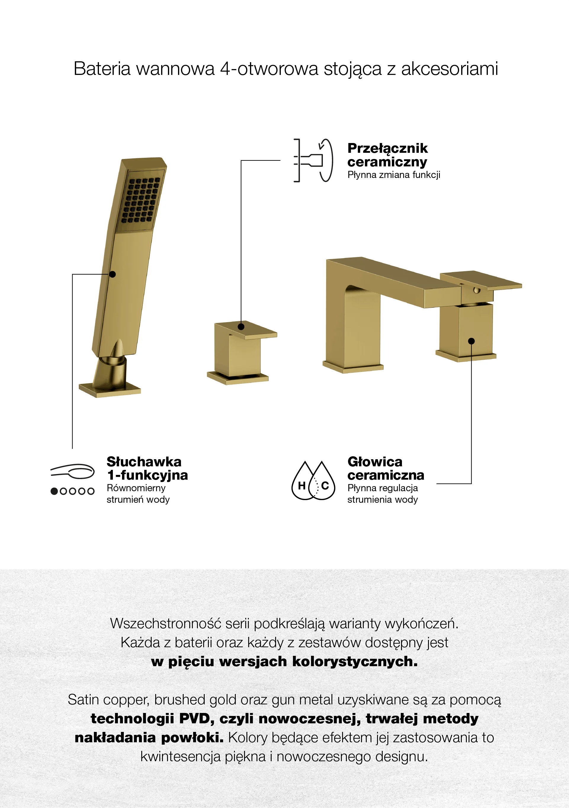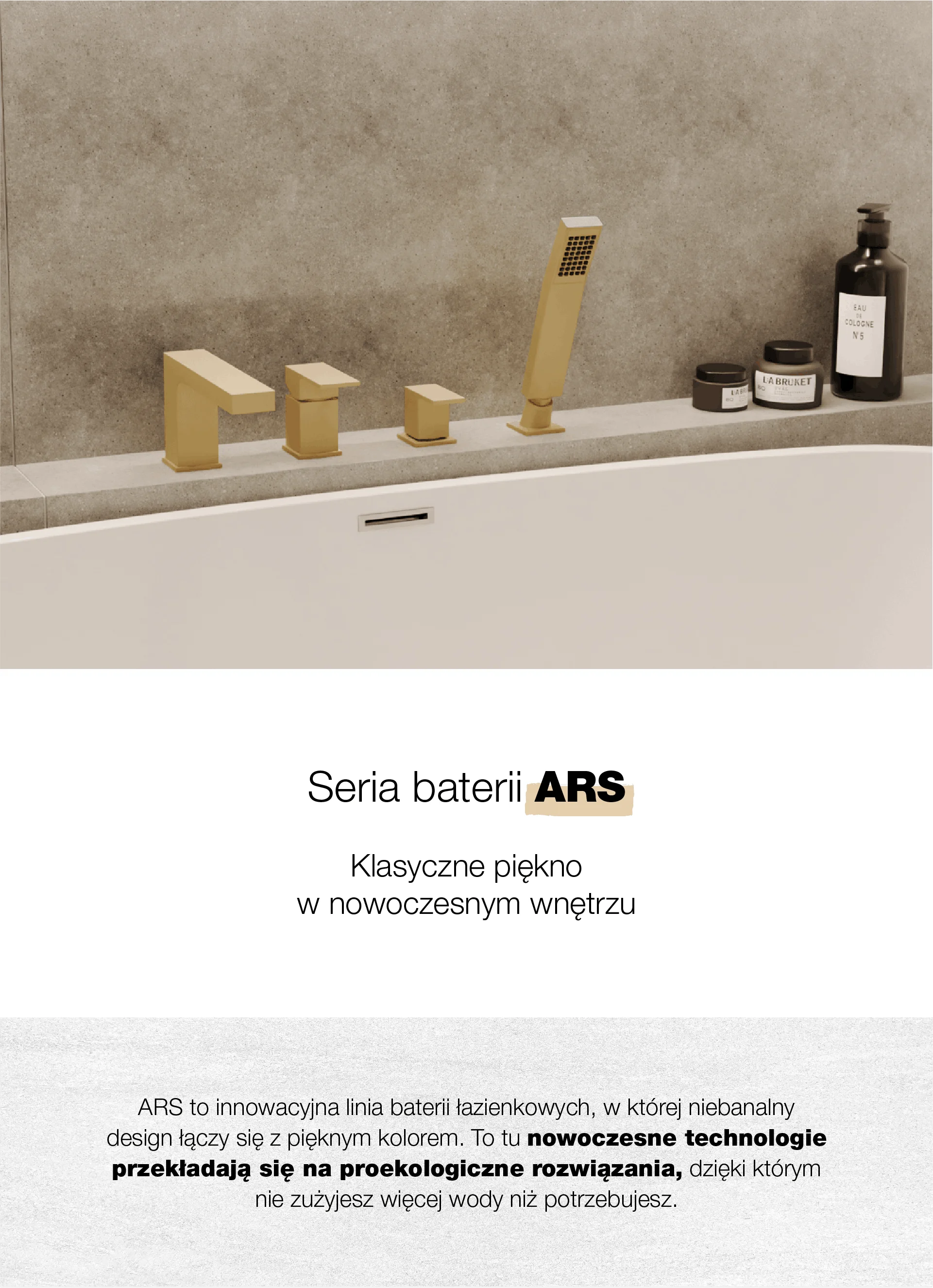 ARS Brushed Gold Bateria wannowa 4-otworowa stojąca z akcesoriami