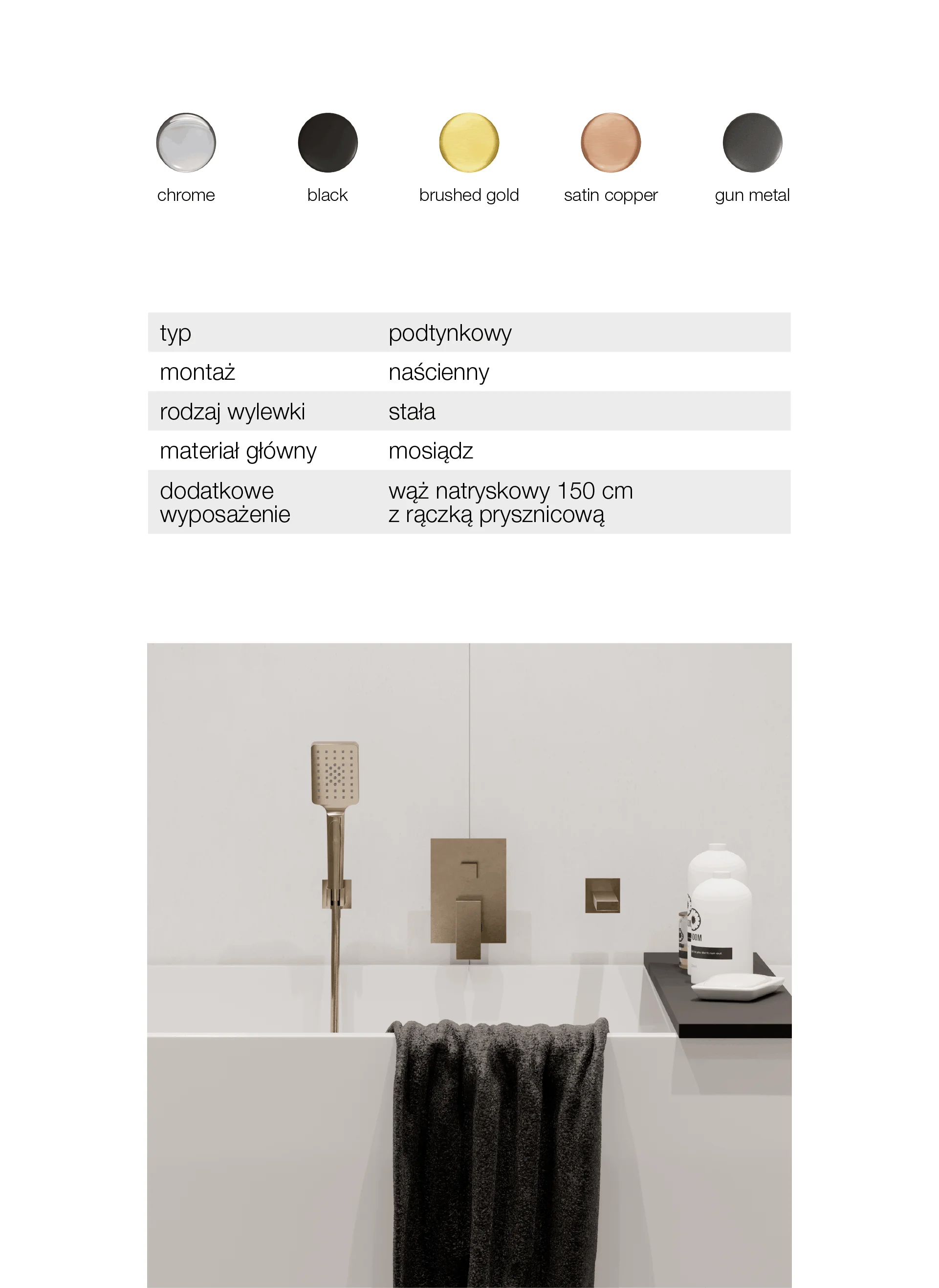 - wąż natryskowy 150 cm z rączką prysznicową
