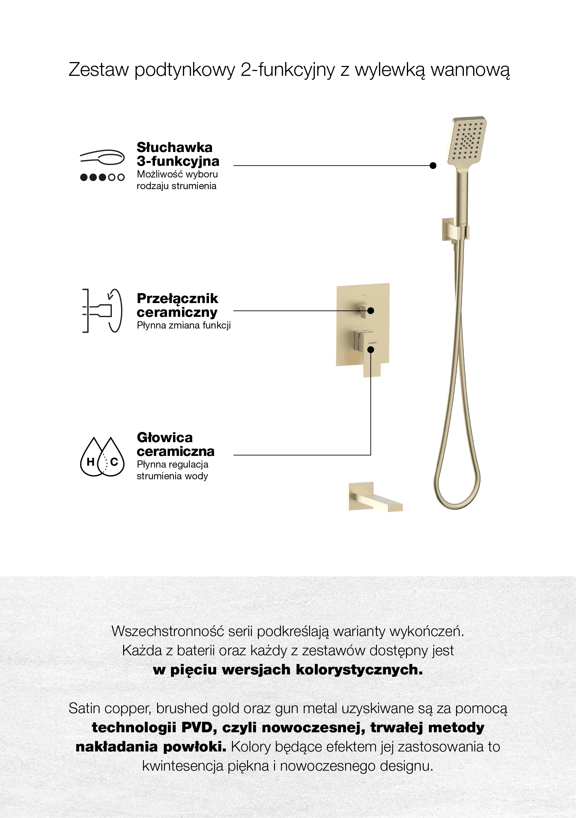 ARS Brushed Gold Zestaw podtynkowy 2-funkcyjny z wylewką wannową