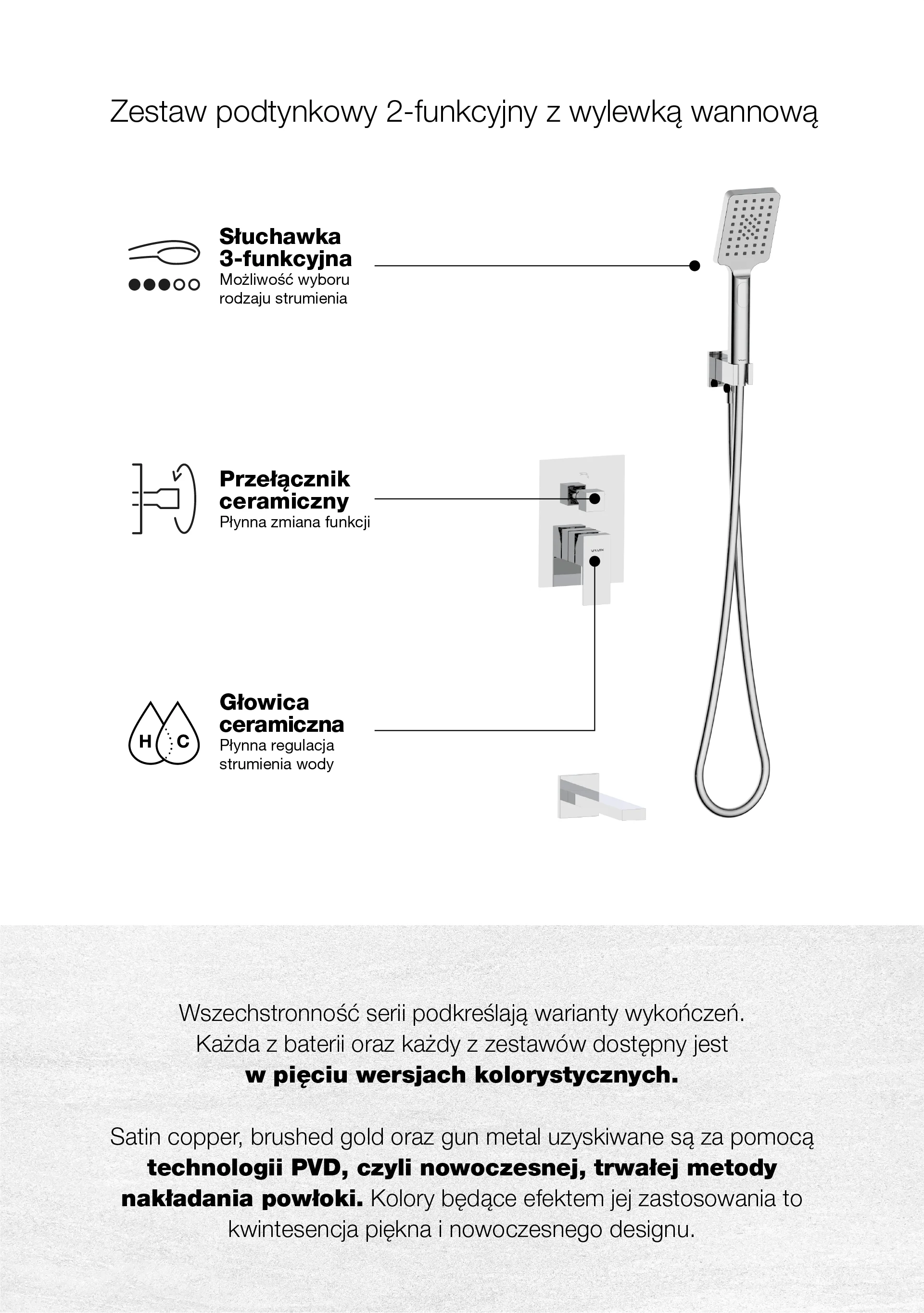 ARS Chrome Zestaw podtynkowy 2-funkcyjny z wylewką wannową