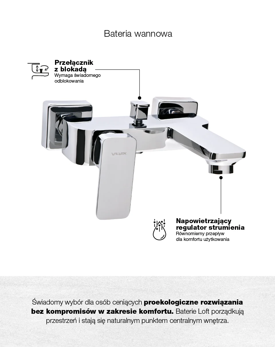 LOFT Chrome Bateria wannowa naścienna